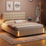 - Moderan tapecirani krevet: Tapecirani krevet sa šarenom svijetlom trakom koja se prelijeva na uzglavlju kreveta, što u vašu spavaću sobu unosi modernu atmosferu. Zahvaljujući daljinskom upravljaču ili mobilnoj aplikaciji, možete mijenjati različite boje i svjetlinu kako bi vam bilo ugodnije.