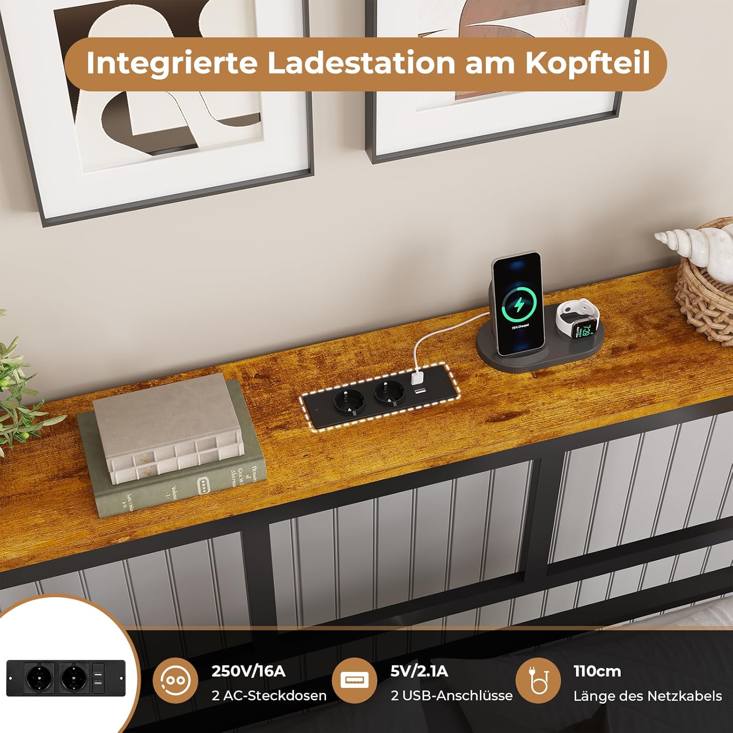 - Uzglavlje s funkcijom punjenja: uzglavlje ovog kreveta za jednu osobu 160 x 200 cm opremljeno je s 2 standardne utičnice i 2 praktična USB priključka. Jednostavno uključite kabel za punjenje u utičnicu kako biste napunili svoj telefon, tablet, Bluetooth slušalice, tako da možete nastaviti svoju zabavu bez brige o praznoj bateriji.