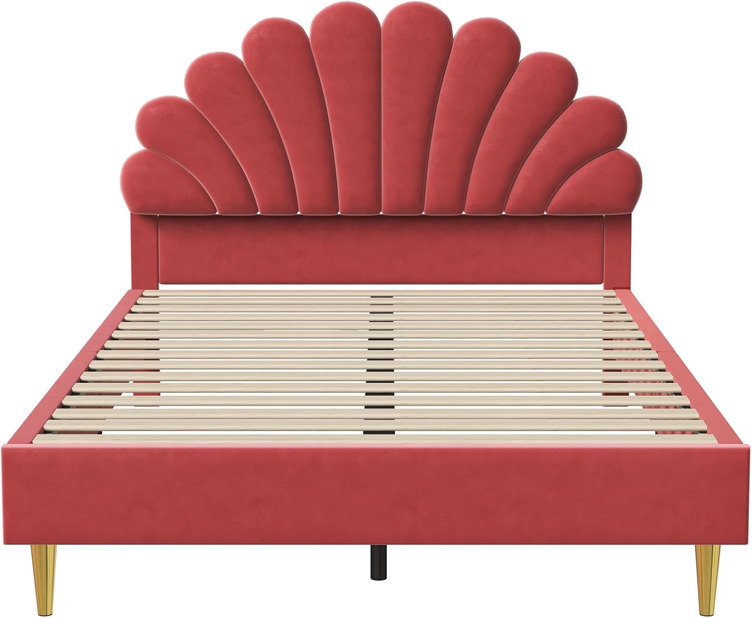 Tapecirani dječji krevet 140 x 200 cm, Djevojački krevet, Dječji krevet 140 x 200 cm za djevojčice, Okvir kreveta s uzglavljem u obliku cvijeta i letvičastim okvirom, krevet od masivnog drva i baršuna
