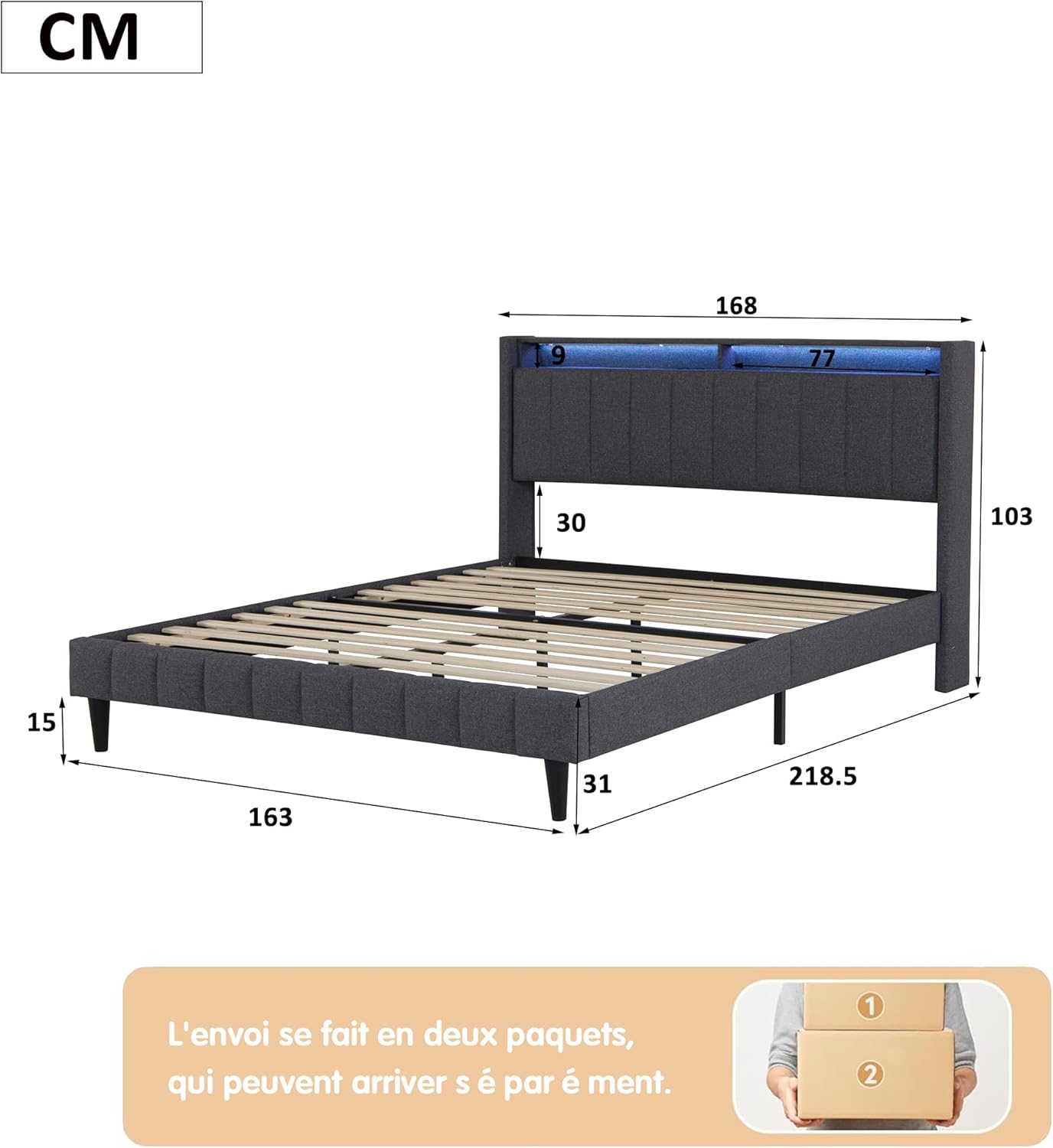 - UZGLAVLJE S OSTALOM – Krevet je opremljen s 1 ladicom s bočnim preklopom i 3 pretinca za pohranu, pružajući dovoljno prostora za pohranu dnevnih potrepština. Polica iznad ladice također može držati ukrasne predmete.