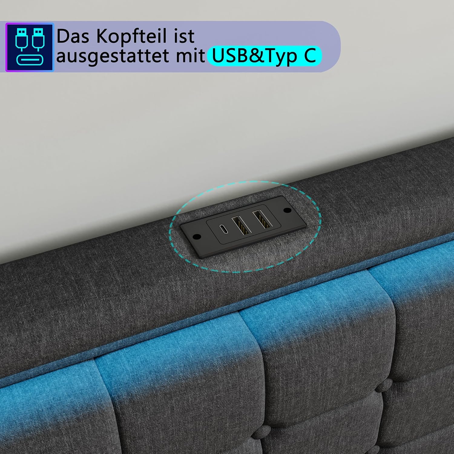 - 【USB & Type-C priključci】Praktično uzglavlje opremljeno je USB i Type-C priključcima za punjenje, tako da možete praktično napuniti svoj telefon i tablet prije spavanja bez traženja utičnica.