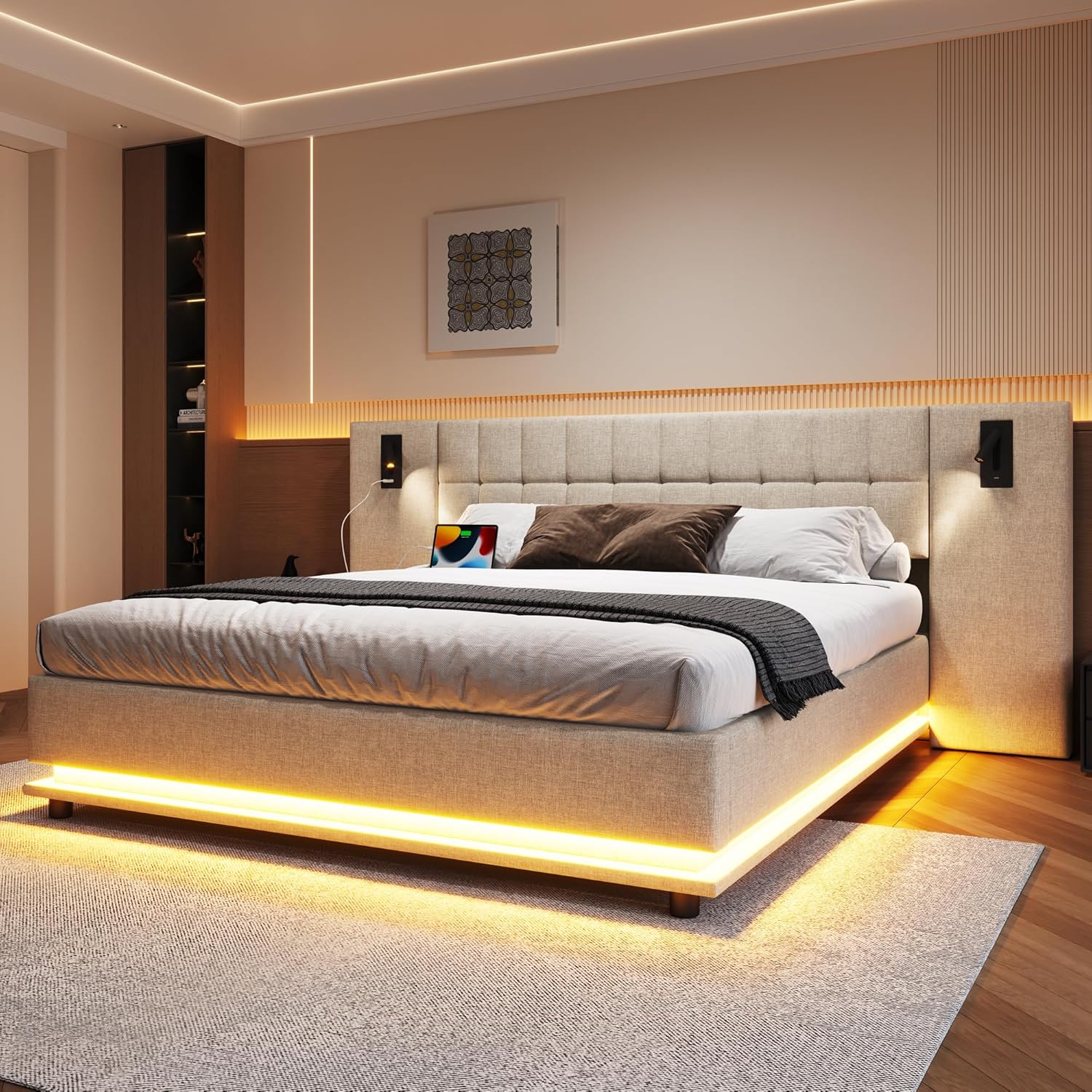 ADFUNIT Tapecirani bračni krevet Beige 06 140 x 200 cm s LED i USB-om