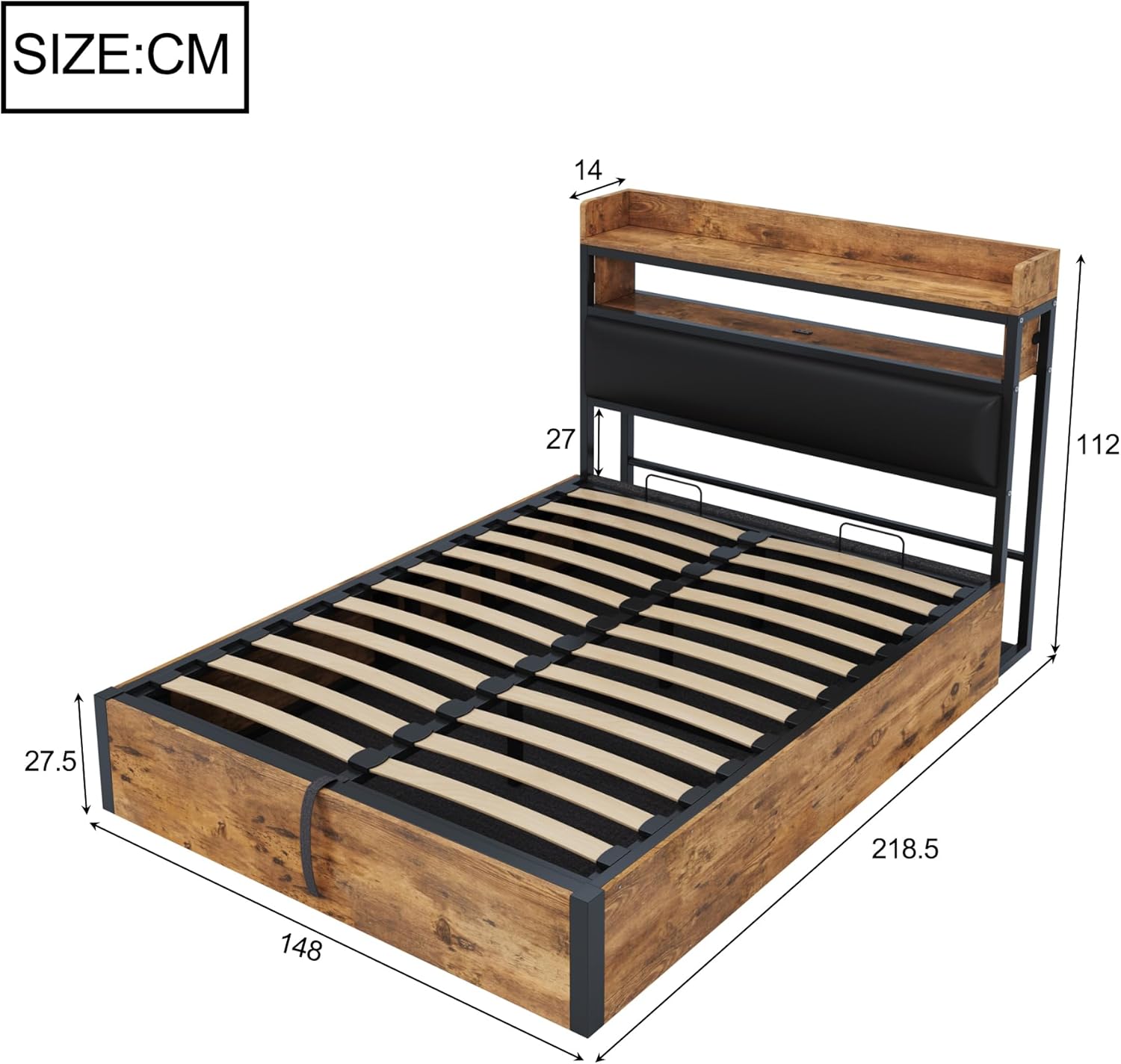 Tapecirani krevet 140 x 200 sa hidrauličnim podizanjem , LED podstavljeni hidraulični krevet s kutijom za pohranu i uzglavljem za 2 osobe.
