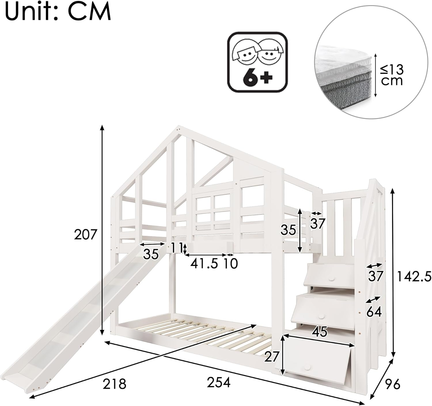 - Dizajniran za sigurnost vašeg djeteta: ovaj umjetnički dizajnirani krevet osmišljen je da izdrži test vremena i pruži vašem djetetu trajnu udobnost i avanturu. Zajedno s rukohvatom, ovaj krevet na kat nudi vašoj djeci najvišu razinu sigurnosti.