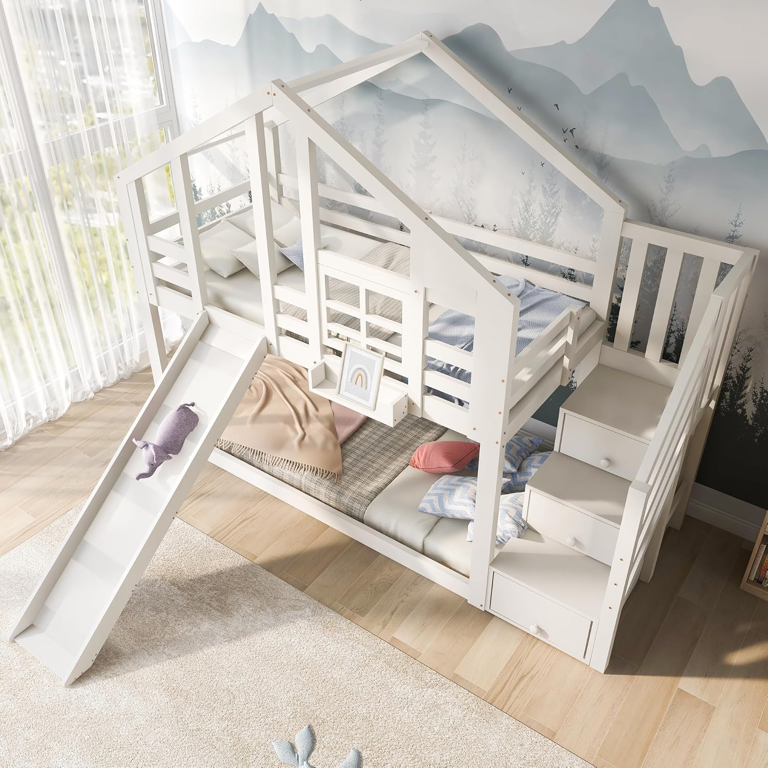 - Svestrani dizajn: sa svojim uzbudljivim dizajnom kućice na drvetu, visokim prostorom za spavanje, ljestvama za pohranu i prozorom, ovaj krevet je san vašeg djeteta. Zahvaljujući svom svestranom dizajnu, može se transformirati u sve što vaše dijete poželi.